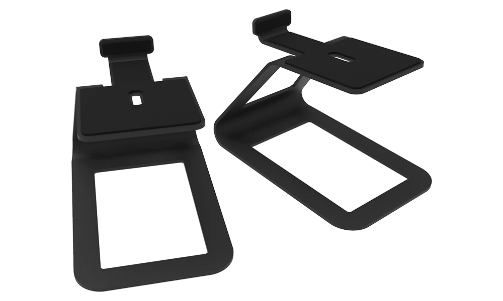 Take your sound game to the next level with the SE4 Elevated Speaker Stand. Standing at a height of 5.6β³, the SE4 boosts your speakers up and off the surface of your desk so that theyβre better aligned with your ears to give you a flawless on-axis response. Its cantilevered and angled platform is designed to absorb resonance and deliver a pure sound without any reflections from nearby surfaces. 2.0mm of silicone padding provide a strong grip that helps keep your speakers and stand in-place. For maximum protection, the SE4 comes with a set of mounting screws that you can use to secure compatible speakers to the stand to prevent falls and accidents. The SE4 is available in both black and white and can hold up to 9 lbs.