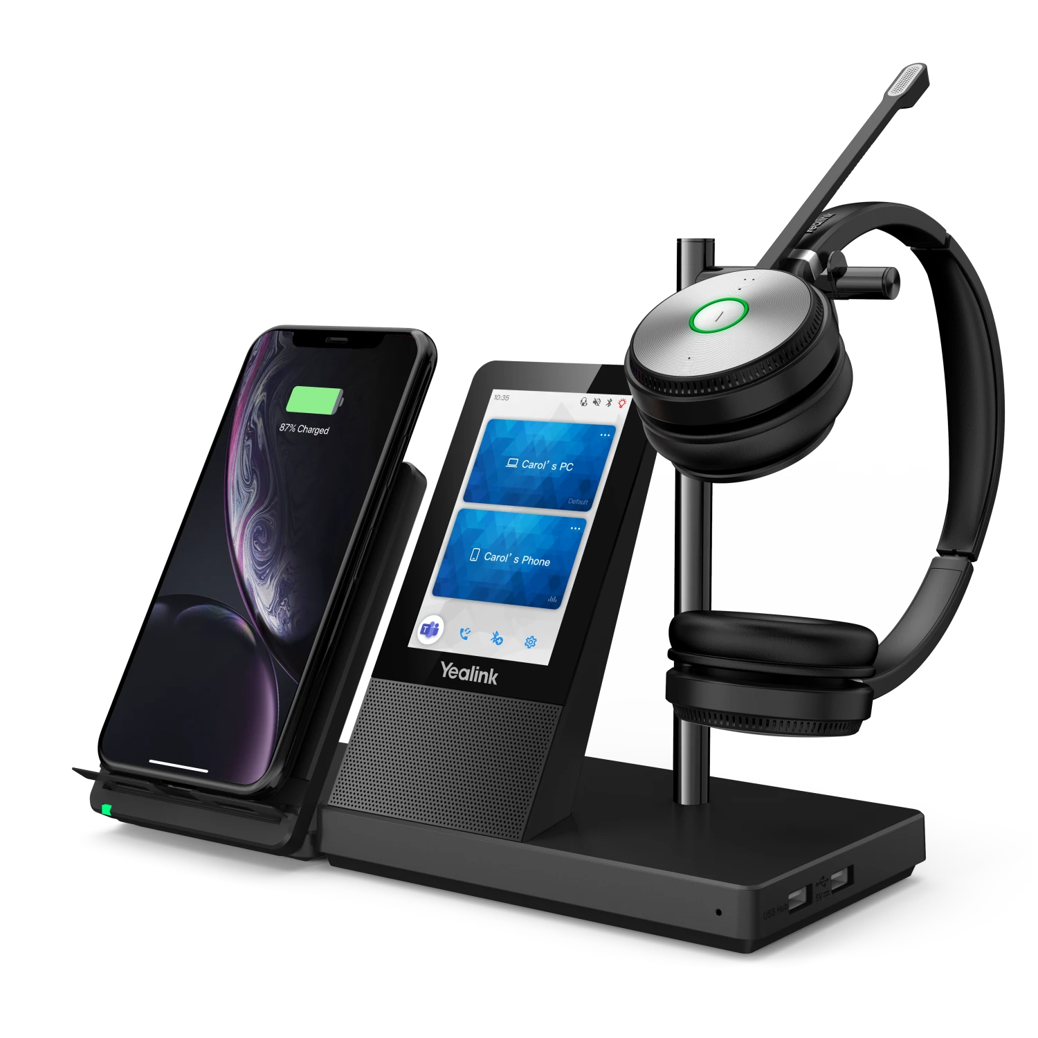 The Yealink WH66 is the Industry-leading DECT wireless headset, with WH66 Dual and WH66 Mono two models, opening an entirely new form of desktop collaboration. Work seamlessly with major UC platforms and integrate natively with Yealink IP Phones. 4.0 inch (480 x 800) capacitive touch screen of base offers newly work experience, just one touch, all control. Act as a workstation, managing phone calls, connecting with multiple devices (desk phone/mobile phone/computer), charging mobile phone wirelessly, and even playing a speakerphone’s role. Best of all, deploying such a multifunctional workstation only needs to plug directly. Easiest things to do, greatest convenience to enjoy